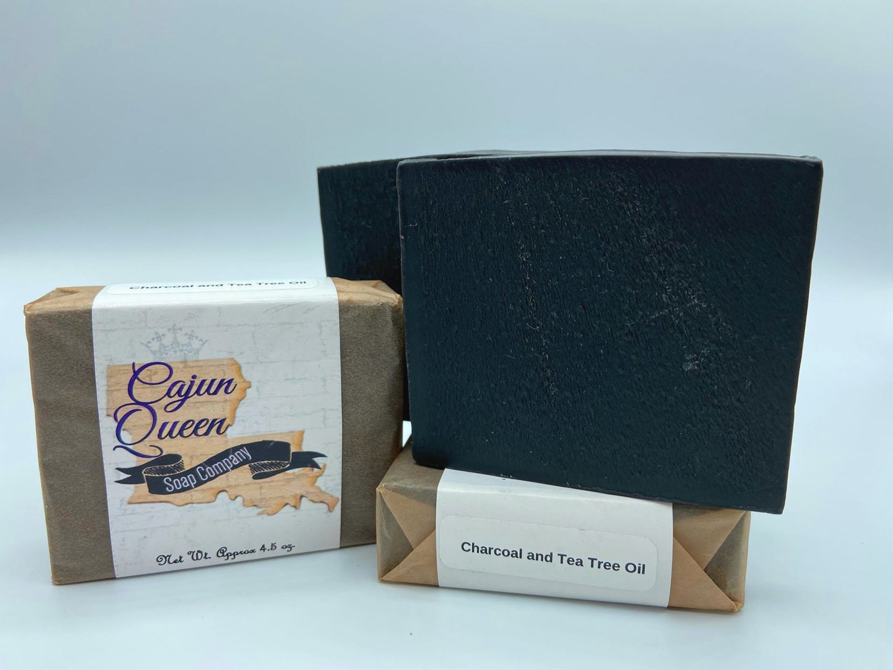 Cajun Queen Soap introduces Charcoal and Tea Tree Oil Goat's Milk Soap. We formulated this soap by Special request. Charcoal and Tea Tree is created with the detoxifying benefits of Activated Charcoal as well as the healing effects of tea tree essential oil. Cajun Queen soap makes no specific claims of health benefits, however try it for yourself and you'll be pleasantly surprised.